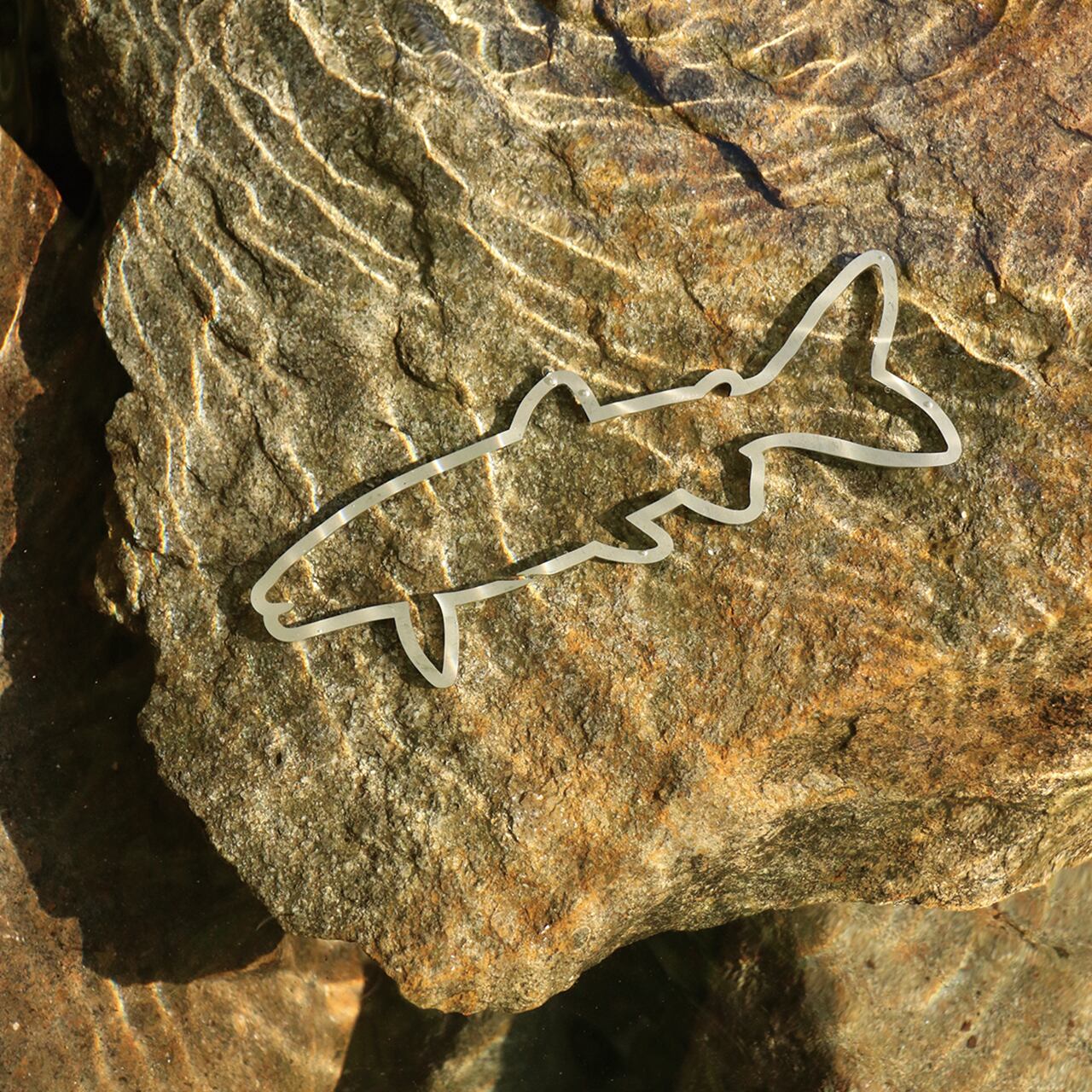 栃木県日光市にある中禅寺湖は日本を代表する釣りのMecca。日本ではここにしか存在しない憧れの魚〝レイクトラウト〟を模ったカラビナハブ。フィッシングバッグに付けたり、壁に掛けたり、キーチェーンの中心に。鉄の持つ経年による色合いの変化は自分だけの愛せるアイアテムに。幅150mm×高57mm×厚2mm×太さ3mm 素材:ステンレス 腹部の切れ目から掛けることが可能です。※可動域約5mm http://stickertunes.com